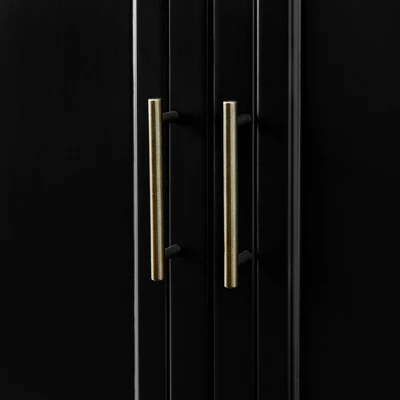 Transform your living room with Saracina Home’s 62” Laurel Tiered Sideboard. Warp resistant MDF, durable laminate, and powder-coated steel blend into a durable, sophisticated design that give you long-lasting style. Three adjustable shelves allow you to organize the console however you like! Keep messier items behind the wooden doors while displaying your prized décor behind the tempered glass panels. The tiered-top can host TVs up to 68” while the other tiers can display even more of your favorite possessions.