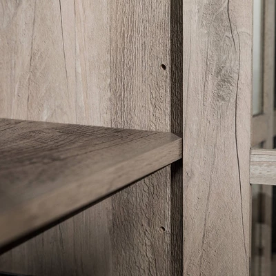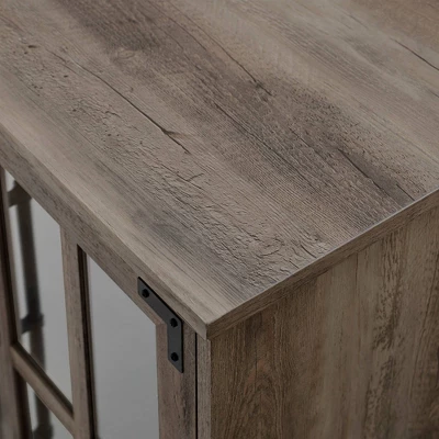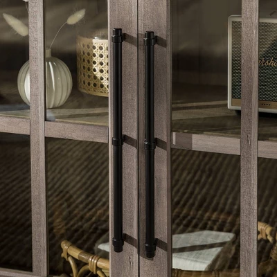 Classic and refined with just the right amount of the trendy influence—that’s the Avalene Modern Farmhouse 4 Door Glass Window Pane 58” TV Stand from Saracina Home. A beveled top surface and base serves a timeless look to this rustic entertainment console. Four tempered safety glass window pane-style doors with decorative metal accents feature soft-close hinges for gentle opening and shutting. Through the glass doors, you can admire your movies, games, and media consoles that reside on the two adjustable shelves. Perfect for media storage, this TV console also features cord management ports to keep all your electronics organized.