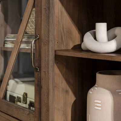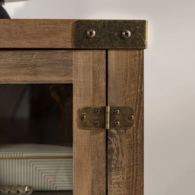 Farmhouse with a transparent twist, the Clarabelle Farmhouse Glass Barn Door 58” TV Stand from Saracina Home provides a fresh take on rustic style. Exposed, antiqued metal hinges and accents on the front of the entertainment center maintain an industrial vibe, while the tempered safety glass barn doors add a contemporary edge. This console features cord management ports and three adjustable shelves so you can keep your living room organized. The blend of open and semi-closed storage allows you to proudly display your fanciest media components and favorite movies.