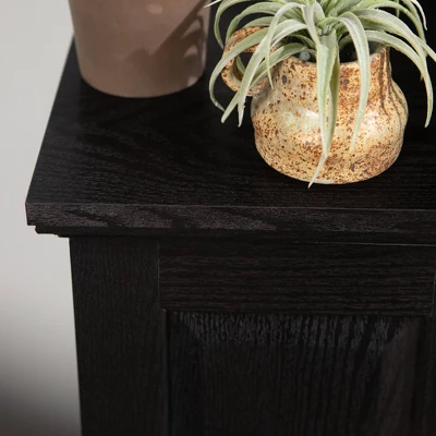 This traditional style highboy TV stand by Saracina Home is an ideal piece for your bedroom or living room. Crafted from warp-resistant wood and durable laminate construction, this stand accommodates TVs up to 48” while staying sturdy. The TV console hosts adjustable center shelving, swinging cabinet doors, and a lower drawer to provide you with ample storage space. And don’t worry about messy cables as there’s plenty of cord management ports to help you stay tidy.