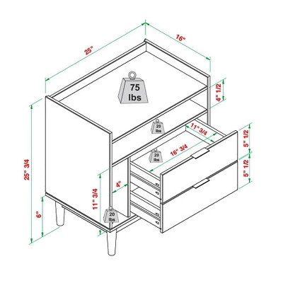 • Weight capacities: Top surface 75 lbs., cubbies and drawers 20 lbs. each