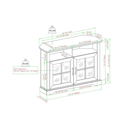 - Weight capacities: Top surface 100 lbs., adjustable shelves 50 lbs.