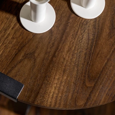 Place our round side table next to your bed, your living room couch, or wherever needed for a rustic, urban industrial touch. The metal base of this accent table wraps around the round wooden table top to accentuate the style. Appreciate the natural wood grain details on the durable laminate table top as you put down your book for bed or when turning on the light of the lamp you place on it.